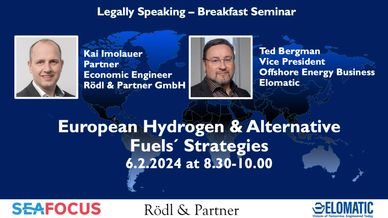 In the first "Legally Speaking" breakfast networking seminar by SeaFocus and law firm Rödl & Partner we will discuss about "European Hydrogen & Alternative Fuels´ Strategies".